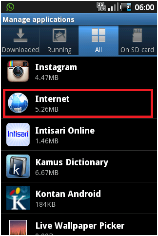 Dan kalau kita mau mengubah peramban dari Opera Mini menjadi Internet atau peramban lainnya, lakukan undefault Opera Mini terlebih dahulu, dengan cara melakukan langkah-langkah di atas lalu pada Manage Applications cari Opera Mini dan sentuh Clear defaults. Sama saja kok. Mudah yaa.