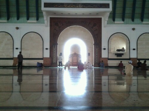 Di Masjid Agung Jawa Tengah ini kami bertiga asyik dengan gadget-nya masing-masing. Saya asyik menuliskan cerita ini di aplikasi WordPress di telepon genggam. Berusaha menuntaskan apa yang harus dituntaskan sambil menunggu panggilan untuk menjemput Ummu Haqi. Bukankah sebuah tekad telah di-azzam-kan kalau seminggu minimal harus ada yang dituliskan. Inilah yang bisa saya persembahkan. Entah ada gunanya atau tidak bagi para pembaca. Namun bagi saya jelas ini adalah sebuah pahatan ingatan agar abadi dalam batu sejarah kami.