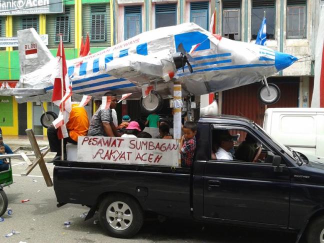 Di acara 17 Agustusan seperti ini, perhatian masyarakat juga tidak teralihkan kepada kendaraan hias. Ada yang dibentuk menyerupai tank penjajah Belanda. Ada pula yang mengangkut “pesawat” Seulawah. Mengingatkan kita tentang kehendak dan kemauan rakyat Aceh untuk membantu perjuangan bangsa mempertahanan kemerdekaan Indonesia. “Pesawat” sumbangan rakyat Aceh ini ikut memeriahkan karnaval kali ini.
