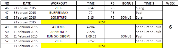 Berikut menu latihan di minggu keenam ini: