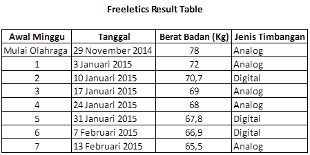 Ohya, tidur tetap tepat waktu, tidak begadang. Makan pun dijaga. Menu makanan di balai diklat ini belumlah secanggih di Pusdiklat Pajak. Tapi tetap menjadi sumber protein dan serat dengan menjauhi nasi sama sekali. Sarapan, makan siang, dan makan malam tetap saya jabanin. Sesekali ikut mencicipi snack pada saat break. Itu saja. Berikut tabel penurunan berat badan itu.