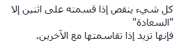 “Semua hal akan berkurang jika dibagi-bagi, kecuali kebahagiaan, justru akan bertambah jika kamu bagi kepada yang lain.” Ciamik.