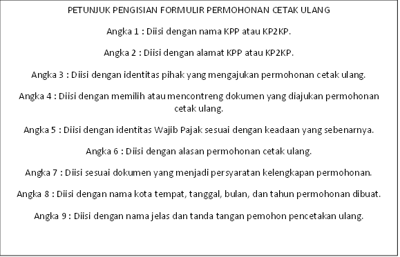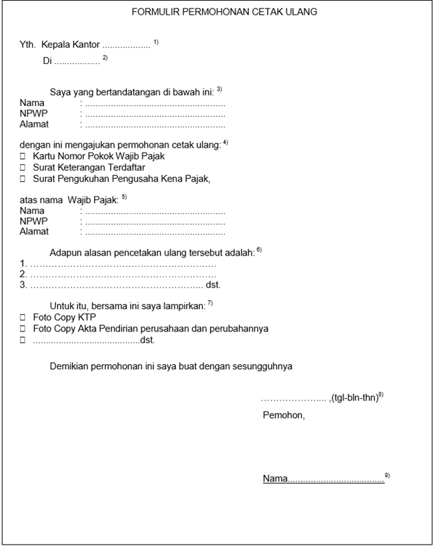 Cetak ulang kartu NPWP dilakukan berdasarkan permohonan Wajib Pajak dengan mengisi formulir seperti ini.