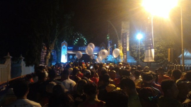 Prambanan masih gulita saat aku dan Mas Hafidz berada tak jauh di belakang garis start yang sudah dipenuhi para pelari. Sebagian besar dari mereka memakai kaos komunitas larinya.