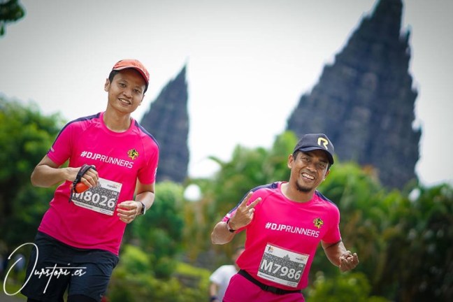 Kami semakin mendekati sekitaran Candi Prambanan. Lima ratus meter lagi garis finis. Banyak peserta lari yang sudah sampai duluan berada di pinggir-pinggir jalan. Barangkali menunggu teman mereka yang belum sampai.