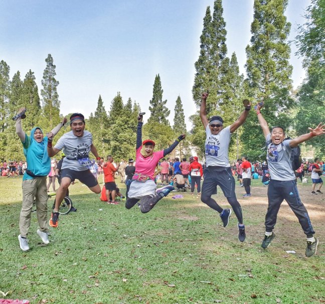 Sekarang para pelari sudah bercampur baur dengan para pelancong yang sedang menikmati kesejukan Kebun Raya Bogor ini. Pemandangan indah Kali Ciliwung yang melintasi Kebun Raya Bogor dari ketinggian tak kugubris. Aku fokus berlari. Sampai-sampai aku tak mengetahui kalau ada teman yang memotretku dari kejauhan. Aku masih kuat berlari. Pokoknya aku bertekad untuk tidak jalan kaki.