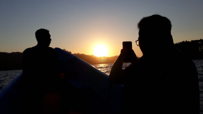 Di perahuku penumpangnya laki-laki semua. Empat perempuan bersama Pak Endang dan Pak Azam di perahu yang lain. Pak Azam berkaca mata hitam dengan tongsisnya bersiap mengabadikan momen-momen yang sayang untuk dilewatkan begitu saja.