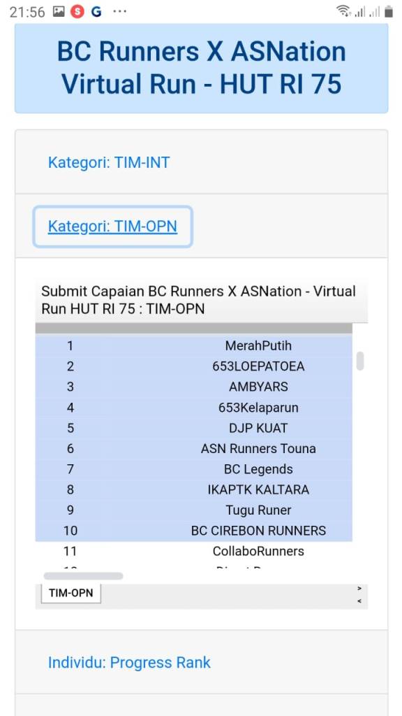 Bagaimana posisi tim? Kami belum mengetahuinya. Pada 17 Agustus 2020 akan ada hasil akhir dan pengumumannya. Daftar peringkat di leaderboard masih berubah-ubah berdasarkan jarak tempuh. Tim lain yang sudah finis ada yang anggotanya masih terus lari sehingga menambah mileage mereka dan mengubah susunan leaderboard. Hebat euy.