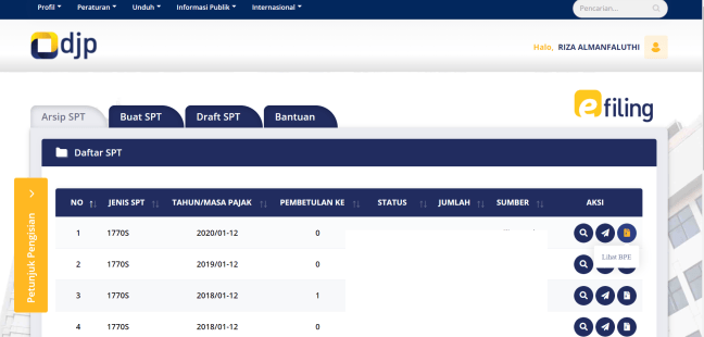 Klik tab Arsip SPT dalam e-Filing, lihat SPT yang sudah kita laporkan, di ujung kanan ada tombol Lihat BPE. Itulah bukti lapor SPT yang bisa kita tangkap layar (screen shot). Jadi usahlah risau, ya.