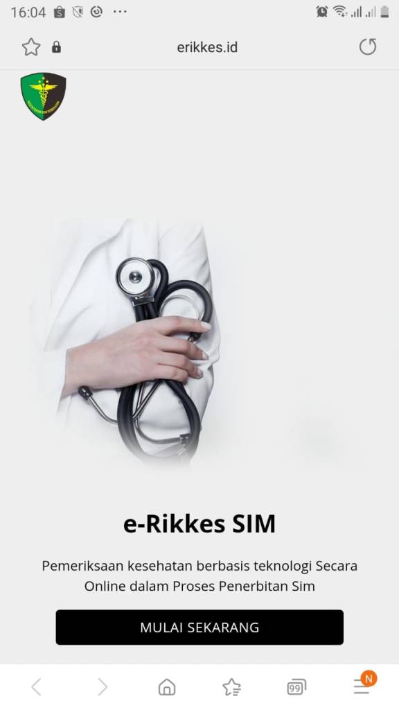 Untuk sampai di tahap ini bisa masuk melalui dua cara: pertama, melanjutkan tahapan sebelumnya. Kedua, menekan ikon SIM kemudian tekan ikon E-Rikkes.
