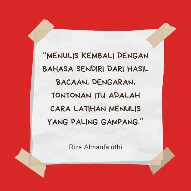 Di samping itu, Mas Riza juga memberikan bonus tip dan trik terkait bagaimana memenangkan lomba menulis, latihan menulis sehari-hari, proses penyuntingan, hingga menerbitkan buku. Komplet! Seperti menu Indomie paling enak di warung kopi.