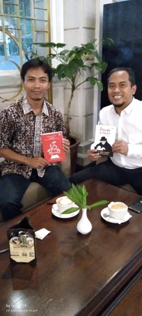 Apa yang diperbincangkan? Banyak sekali. Namun, tidak jauh-jauh dari kondisi ekosistem perbukuan tanah air. Akhirnya pertemuan itu harus berakhir karena saya harus mengikuti kegiatan lagi. Kami berfoto bersama dan ia menyerahkan buku yang ditulisnya berjudul Pseudo Literasi.