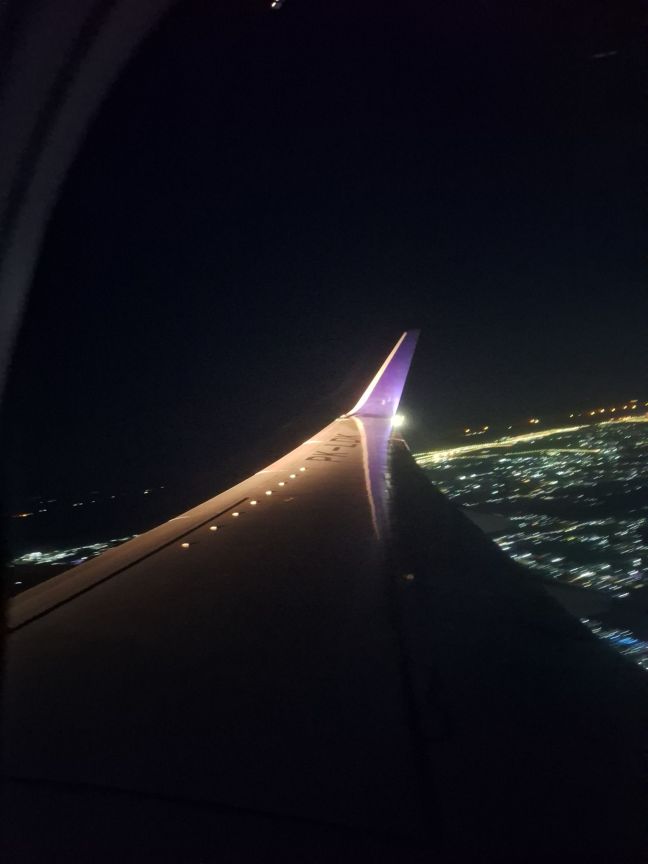 Lampu di ujung pesawat saat meninggalkan Jakarta.