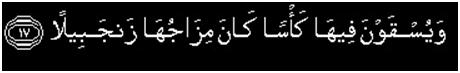 “Di dalam surga itu mereka diberi segelas minum (minuman) yang campurannya adalah jahe.”