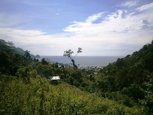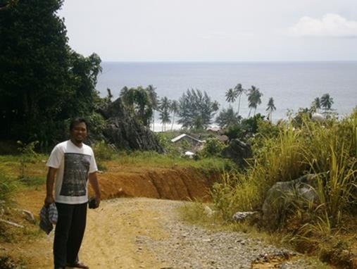 Ya betul, naik sedikit saja kita akan disuguhkan bentangan pemandangan laut dan rumah-rumah penduduk di bawah sana. Tunggu, belum. Naik sedikit lagi, di atas batu besar, kita akan punya tempat yang paling baik untuk mengambil gambar dari ketinggian. Pantai, laut, bukit, pohon-pohon kelapa, atap-atap rumah tersaji seindah-seindahnya dari kejauhan. Subhanallaah.