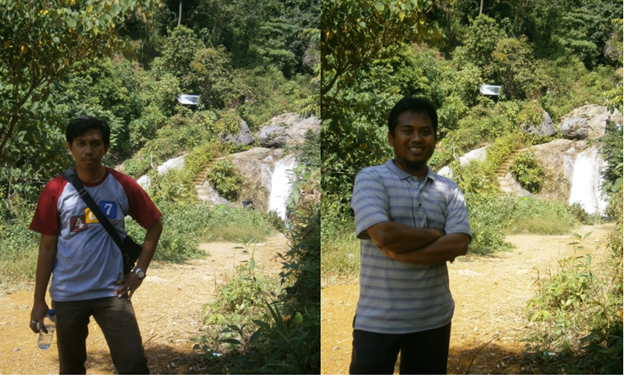 Bersama DJ-Ono di depan Air Terjun Tingkat Tujuh. Kok enggak pose berdua? Ini gantian ngambilnya. 😀 (Foto koleksi pribadi)
